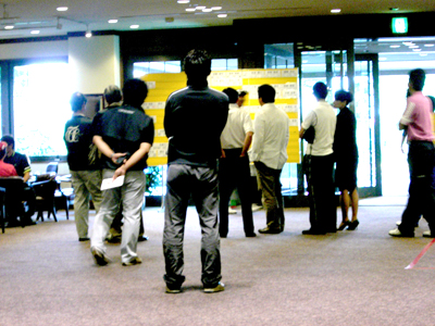 スコアが貼られて、自分の順位がわかるボードの前に集まってくる